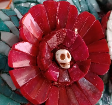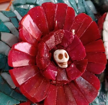 Escogió cuidadosamente las piedras más preciosas, los colores más vibrantes de las entrañas de la tierra: el verde esquivo del jade maya que abre todas las puertas, la promesa del día y la luz inagotable de la turquesa azteca, las piedras incas como granos de maíz, ensambladas para siempre.