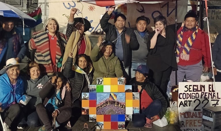 Y así se los puede ver desde hace días, en cortes de ruta, bajando de las comunidades para encontrarse con otras comunidades en la misma lucha, en Asambleas para decidir colectivamente cómo continuar adelante, por las callecitas de pequeños pueblos y de la capital con sus antorchas y sus almas y sus ideas encendidas, con sus ancestras y ancestros como guía mientras cantan que hace cinco siglos que vienen resistiendo con coraje manteniendo siempre la esencia porque son semilla y sikuris, quenas, cajas suenan y se alzan junto a cada puño cuando sus voces gritan que se hace vida con el sol y en la Pachamama florecen.