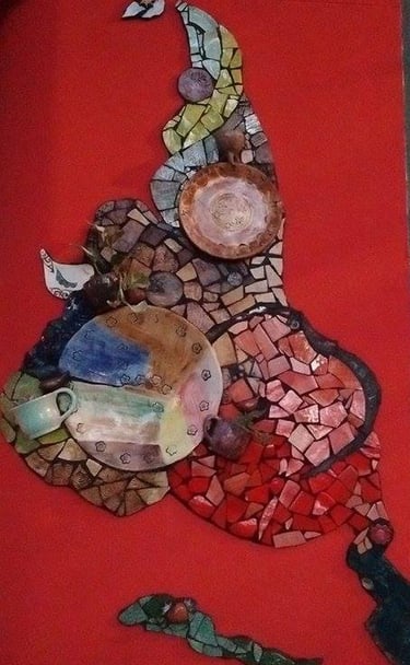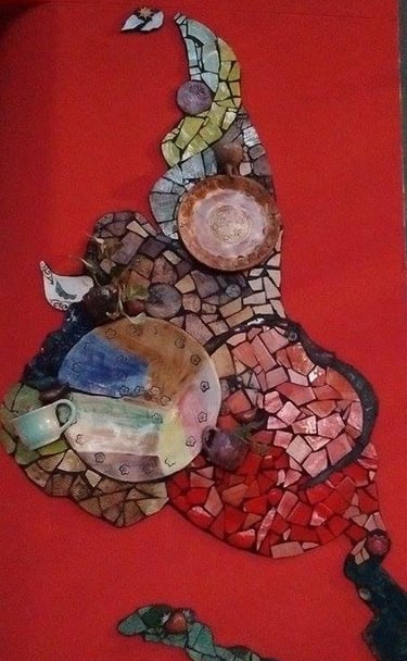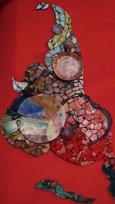 Respecto de la realización, experimentaremos con diversos materiales: Cerámicos de descarte / Vidrio pintado / Piedras / Vajilla / etc. Para que nuestra obra sea lo más sustentable posible y que el factor económico no sea un freno en el momento de la creación (si preferís podés realizar tus prácticas con azulejos y/o cerámicas).
