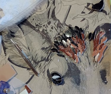 El propósito de este espacio de aprendizaje es acompañar a las/los participantes en la realización de una obra en mosaico artístico.