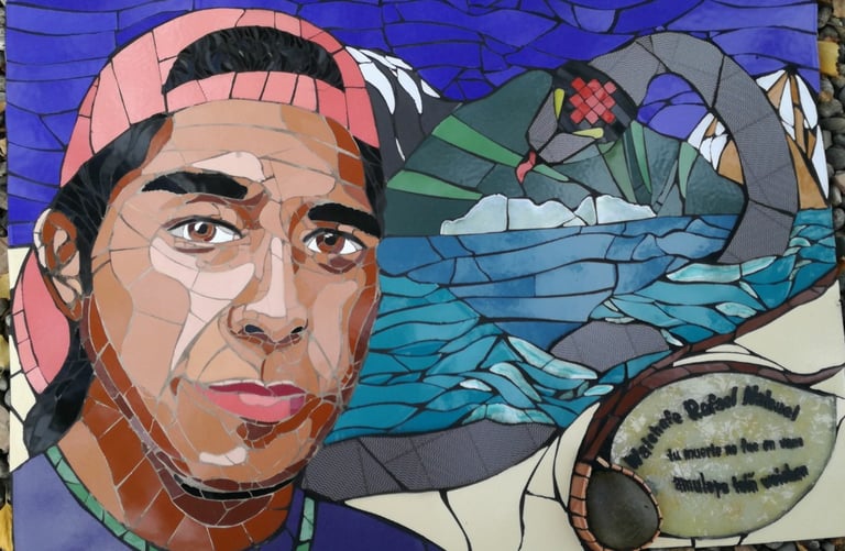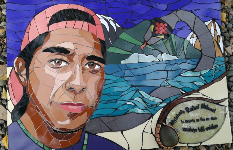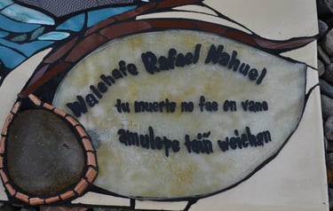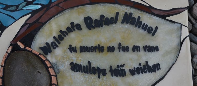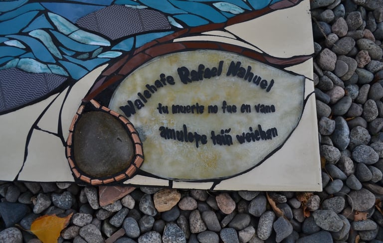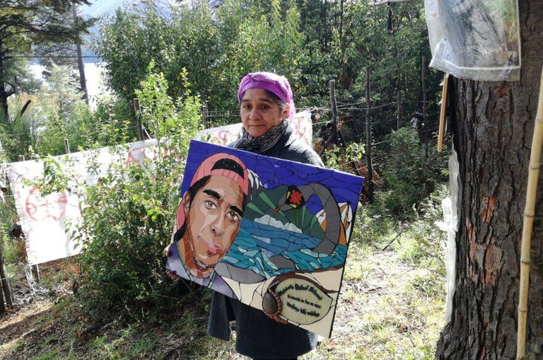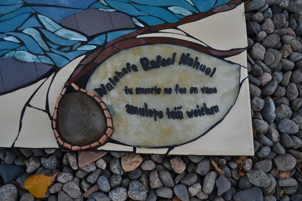 Y ahí quedó, en la Lof lafken winkul Mapu, para ser instalado en ese tronco junto a los casquillos de bala con que el Estado argentino lo asesinó, con el lago Mascardi frente a él, con el viento patagónico a sus alrededor, con los sonidos y aromas de la Mapu, en el lugar donde quedó su sangre de waichafe, de guerrero Mapuche.