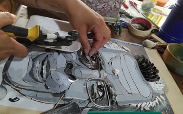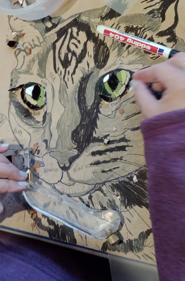 con el objetivo de desarrollar el mosaico artístico, incorporando a las clases las bases teorícas fundamentales de las artes visuales para que las/los estudiantes puedan apropiarse de conceptos que les van a permitir desarrollar el mosaico como herramienta expresiva y tomar sus propias decisiones compositivas.