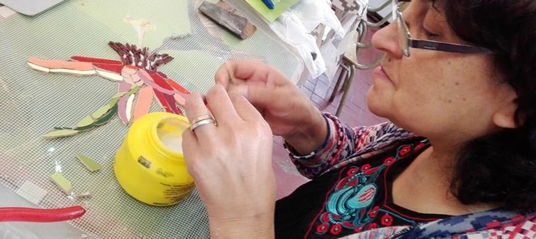 desde el año 2014 realizamos talleres de mosaico Con clases regulares en Rafael Calzada, Almirante Brown, Provincia de Buenos aires y en formato de seminarios en distintos lugares del país, basados en tres temáticas centrales:
