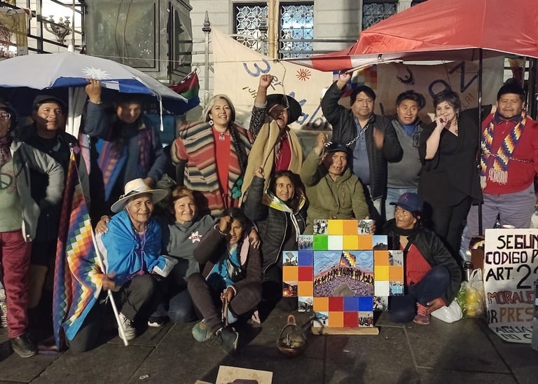 Y así se los puede ver desde hace días, en cortes de ruta, bajando de las comunidades para encontrarse con otras comunidades en la misma lucha, en Asambleas para decidir colectivamente cómo continuar adelante, por las callecitas de pequeños pueblos y de la capital con sus antorchas y sus almas y sus ideas encendidas, con sus ancestras y ancestros como guía mientras cantan que hace cinco siglos que vienen resistiendo con coraje manteniendo siempre la esencia porque son semilla y sikuris, quenas, cajas suenan y se alzan junto a cada puño cuando sus voces gritan que se hace vida con el sol y en la Pachamama florecen.