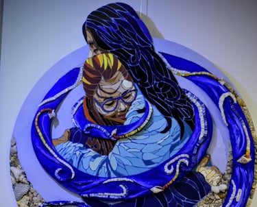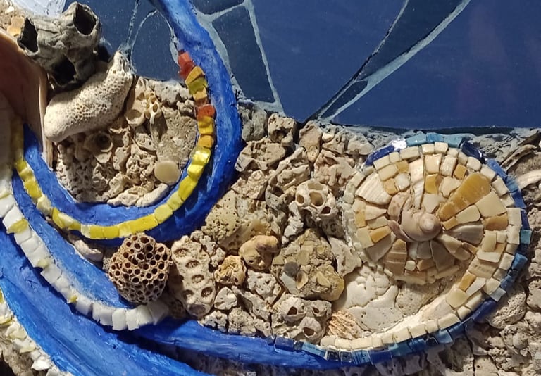 74 x 84cm / Azulejos - smalty - pedacitos de mar - piedras patagónicas - vidrio - cable - polifan - soporte mdf.